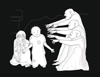 A personal reinterpretation of the iconic character « Hanzala » imagining him on an internal spiritual journey where, for the first time his face is revealed.